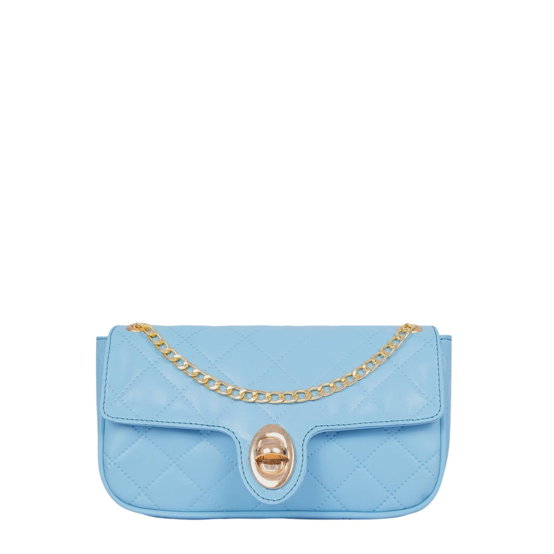 Sky Blue Faux Leather Quilted Shoulder Bag With Long Chain Handle