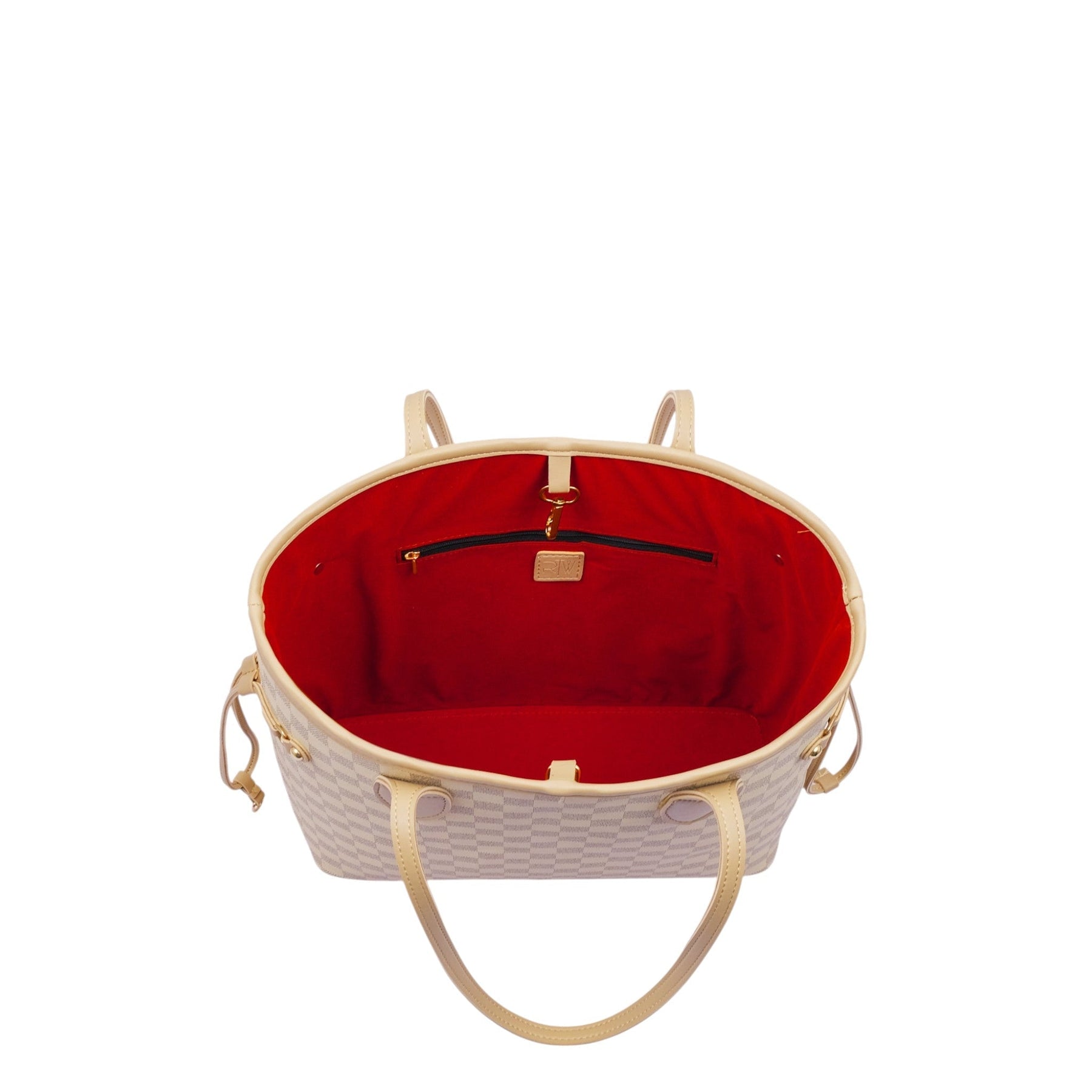 Beige Checkered Never full Tote Bag Zipper Pocket