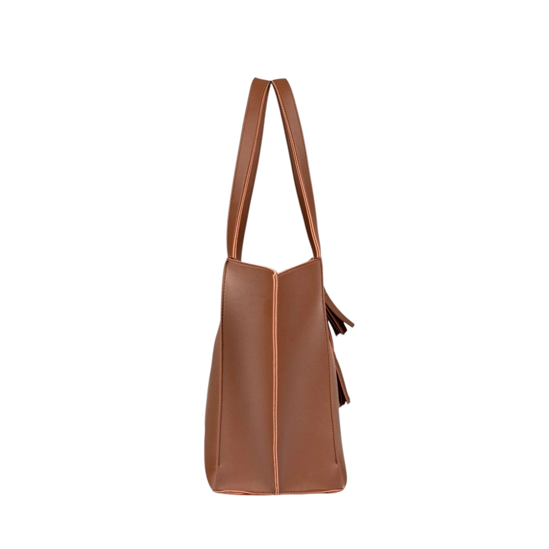This spacious brown faux leather handbag combines style and practicality, making it an excellent choice for everyday use. It features a large main zipper compartment and an inside zipper pocket, providing ample space to keep your essentials neatly organized.